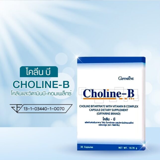 โคลีน บี กิฟฟารีน (Choline B Giffarine) วิตามินบีรวมผสมโคลีน ช่วยบำรุงสมอง เสริมระบบประสาท เพิ่มสมาธิและความจำ เหมาะกับ นักเรียน นักศึกษา วัยทำงาน หรือคนที่รู้สึกเครียด พักผ่อนไม่พอ