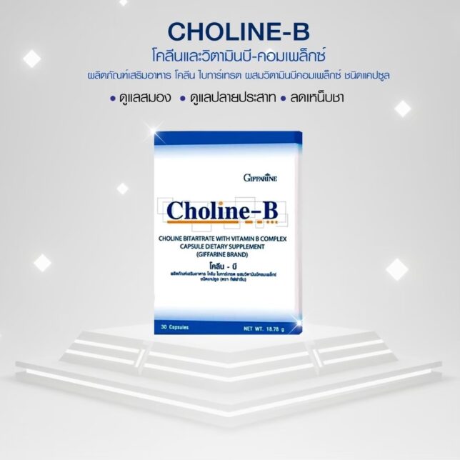 Choline Giffarine choline-b GIFFARINE กิฟฟารีน บำรุงสมอง ฟื้นฟูความจำ มือเท้าชา วิตามิน B กิฟฟารีน วิตามินบำรุงสมองนักเรียน วิตามินบำรุงสมองผู้ใหญ่ วิตามินบีรวม วิตามินบีรวมกิฟฟารีน วิตามินสำหรับสอบ อาหารเสริมบำรุงประสาท อาหารเสริมบำรุงสมอง อาหารเสริมเพิ่มความจำ โคลีน - บี โคลีน กิฟฟารีน