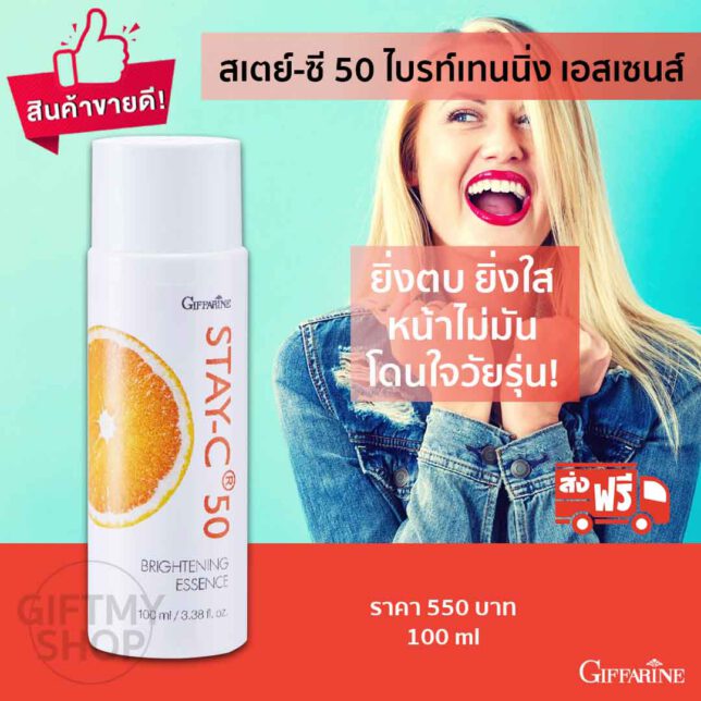 เอสเซนส์ เช็ดหน้า บำรุงผิว สำหรับสิว ยิ่งตบ ยิ่งใส ไม่มัน กระชับรูขุมขน วิตามินซีเข้มข้น เนื้อบางเบา ซึมซาบเร็ว ไม่เหนียวเหนอะหนะ กิฟฟารีน สเตย์-ซี 50 ไบรท์เทนนิ่ง เอสเซนส์